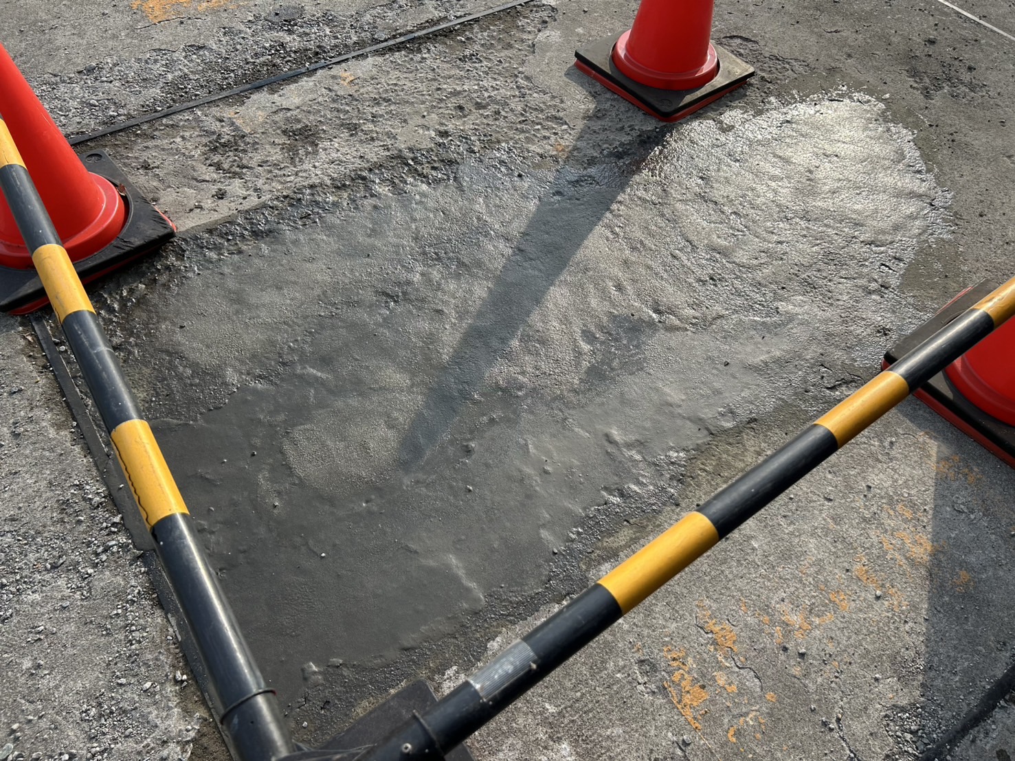 ひび割れたアスファルト、コンクリート面を強固に密着補修します。